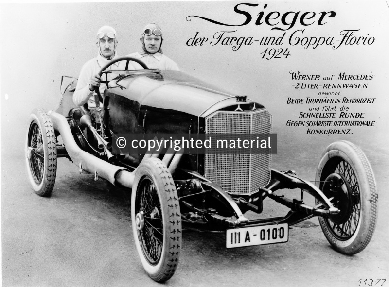 Der Sieger Christian Werner und Beifahrer Karl Sailer mit einem Mercedes 2-l-Targa-Florio-Rennwagen 1924.